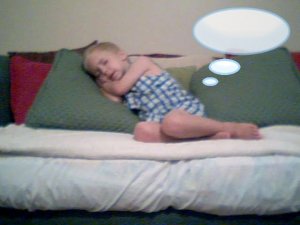 DJ faking out a summer time nap…and quick picture by big sister , bubble should say…”can I get popcicles for a nap?”